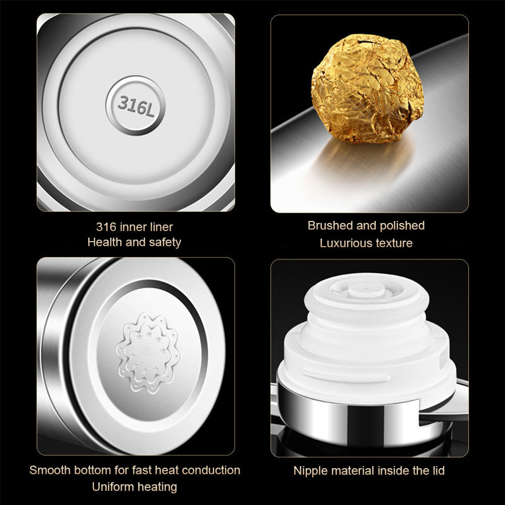 1.Safe and Durable: Made with 316 stainless steel, this 2.3L press-type welcome pot eliminates the need for fragile glass liners. It is safer, more durable, and resistant to scale buildup and odors, providing peace of mind during use. Specification: Origin: Mainland China Drinkware Type: Water Bottles Style: Brief Water Flowing Method: Pressing Type Supply Type: In-Stock Items Applicable People: Adults Shape: Handgrip Model Number: Water Bottles Thermal Insulation Performance: Thermal Insulation Feature: Stocked,Eco-Friendly Outdoor Activity: Camp Boiling Water: Applicable Anti-Corrosion Coating: Equipped Material:316 Stainless Steel/Silicone Capacity:2.3L Product Size: 300.00x140.00x140.00mm/11.81x5.51x5.51inch