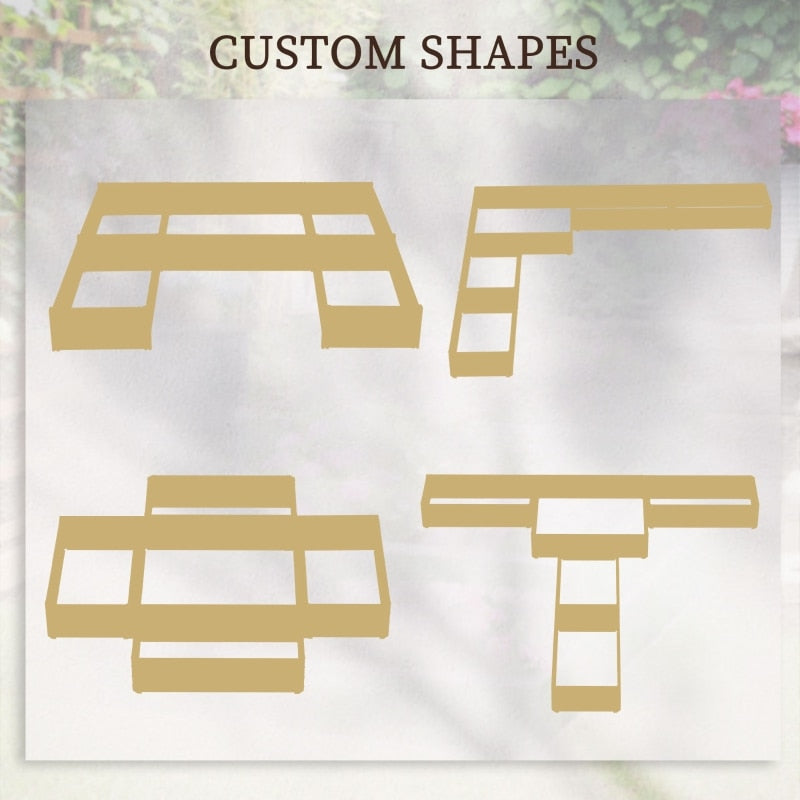 - Custom Shapes: Use a raised bed or more raised beds for gardening; You can organize by planting time and plant type, rearrange the shapes, and come up with exciting combinations in U shape, L shape, etc.