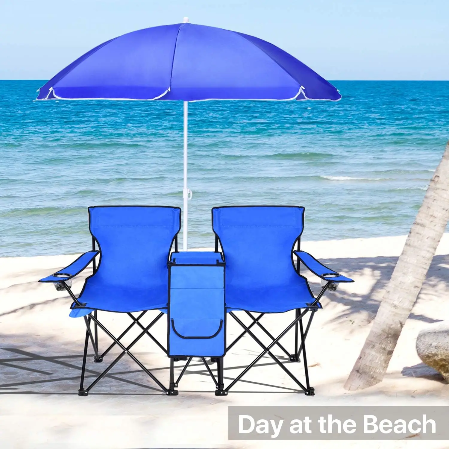 2-Person Folding Chair with Canopy - With a spacious and comfortable design, our fold up chairs for outside can easily seat two people up to 250lb each, allowing you to relax and spend time with your partner or friend.