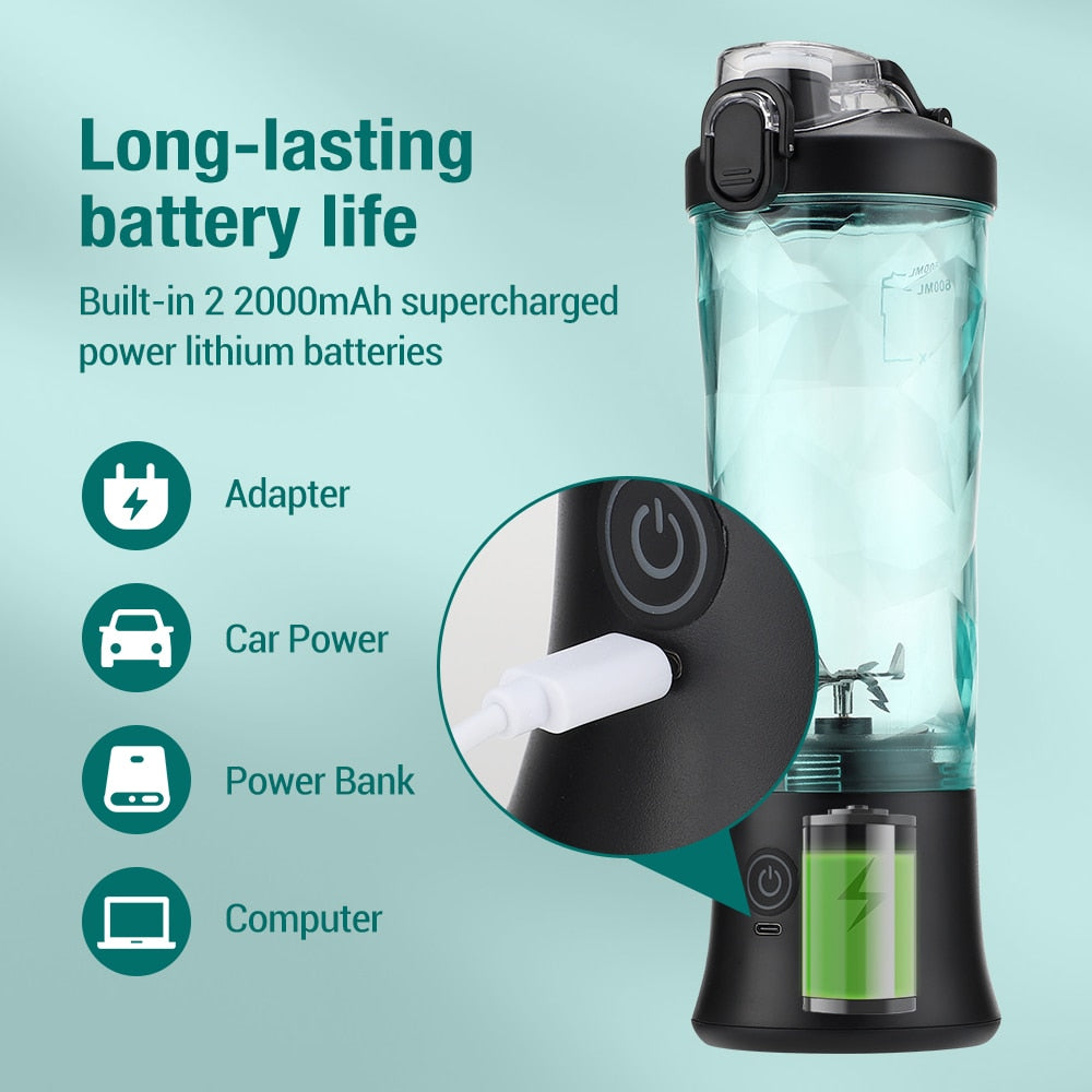 Portable Blender 600ML Electric Juicer Fruit Mixers 4000mAh USB Rechargeable